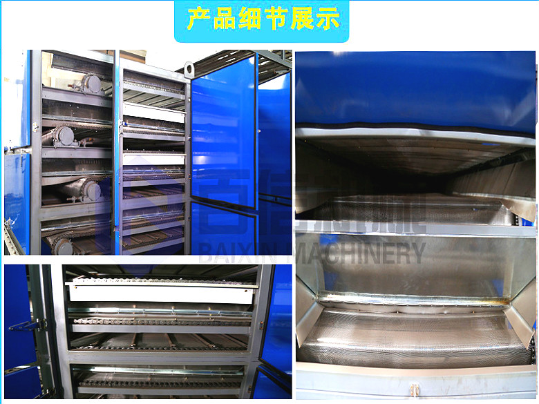 百信機(jī)械生產(chǎn)的大型網(wǎng)帶式辣椒烘干機(jī)是非標(biāo)機(jī),都是可以根據(jù)客戶的生產(chǎn)需求來(lái)定制的。常規(guī)型號(hào)有:6米、7米、8米、9米、10米、11米、12米、15米等。網(wǎng)帶層數(shù)4-6層可定制加工,滿足了不同用戶的需求。